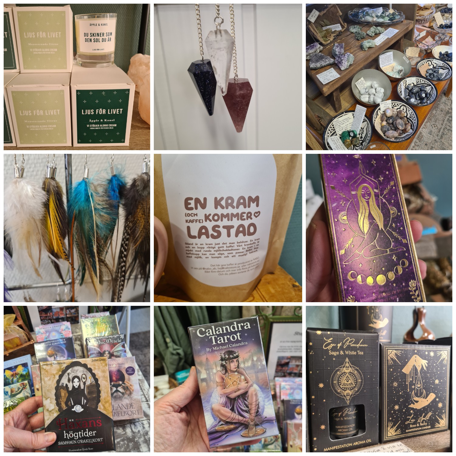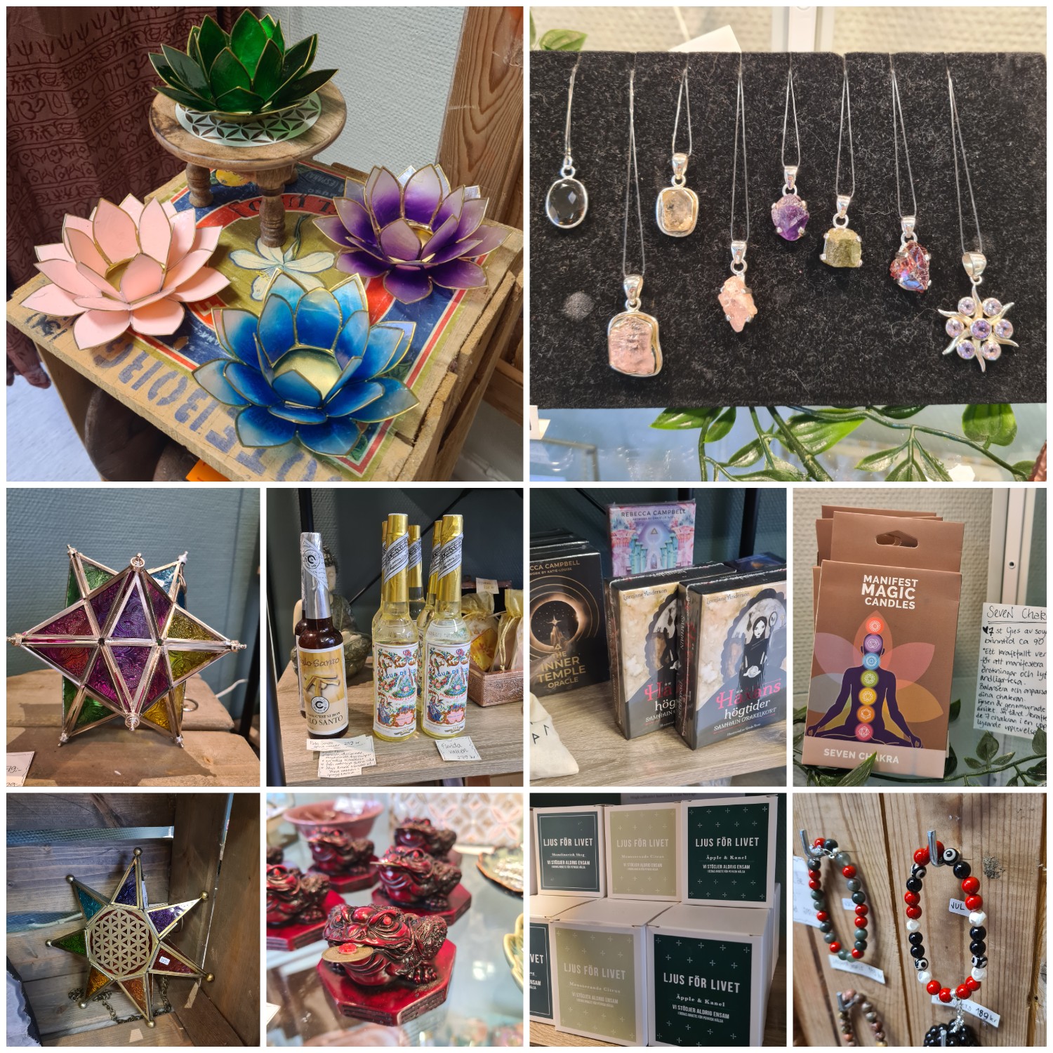 Här kan Du finna kristaller, rökelser, teer, lite kläder, inredning, tarot och annat mysigt.